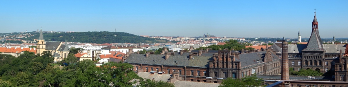pohled na Prahu ze střechy Fyzikálního ústavu Univerzity Karlovy,